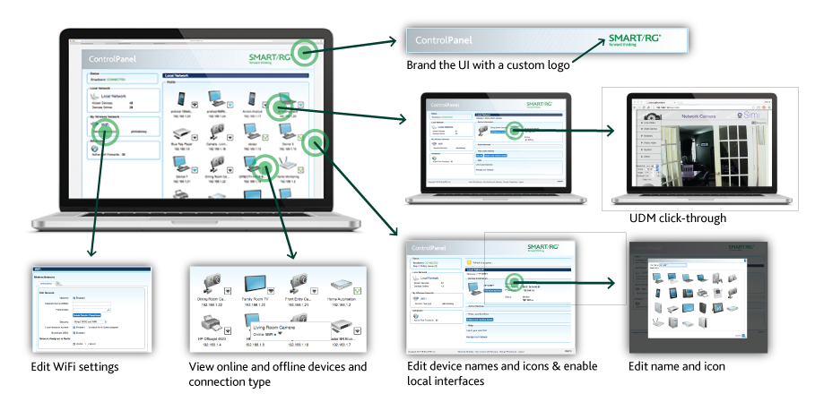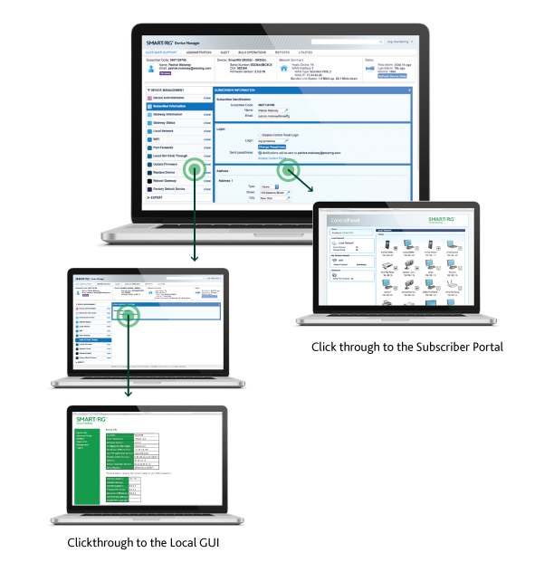 The Mosaic Device Manager management platform features a customer service and a subscriber portal that provides visibility, as well as manageability, of a subscriber’s home network (LAN). The IP enabled devices connected to the network are auto detected, identified and presented on these portals.