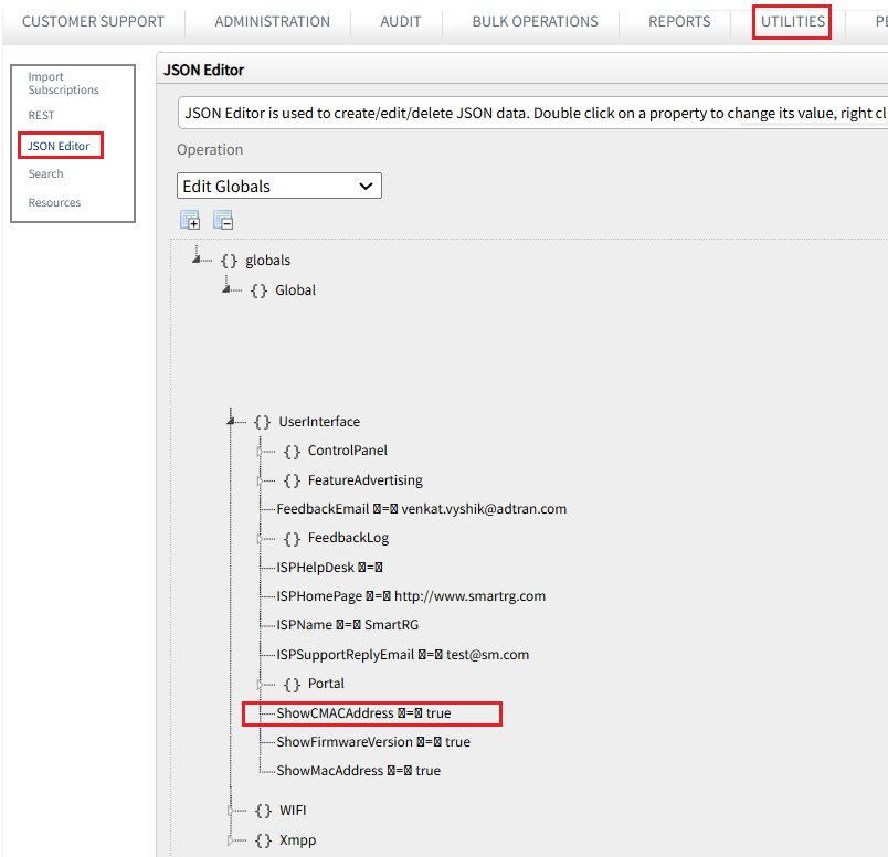 Navigate to Utilities > JSON Editor.