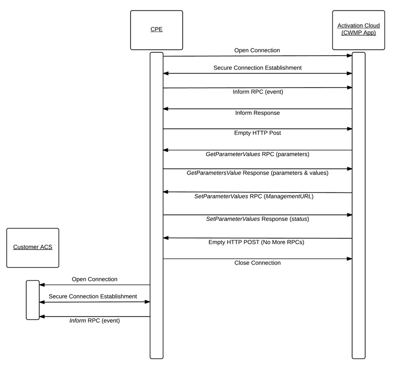 Activation is a TR-069 standard allowing for the seamless change of the ACS Management URL on CWMP-enabled customer premise equipment, or CPE (aka residential router). In short, activation redirects a CPE to an ACS systematically.