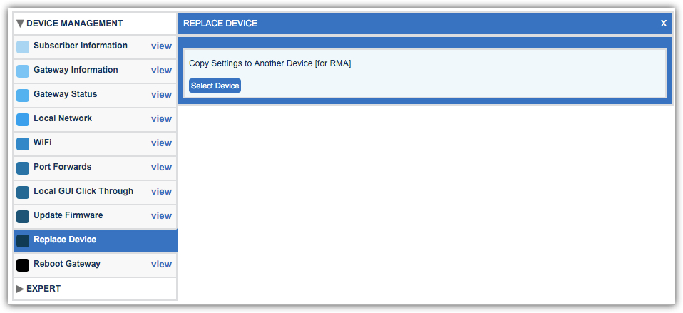 - From the left navigation bar, expand the Expert drop-down and select Replace Device.