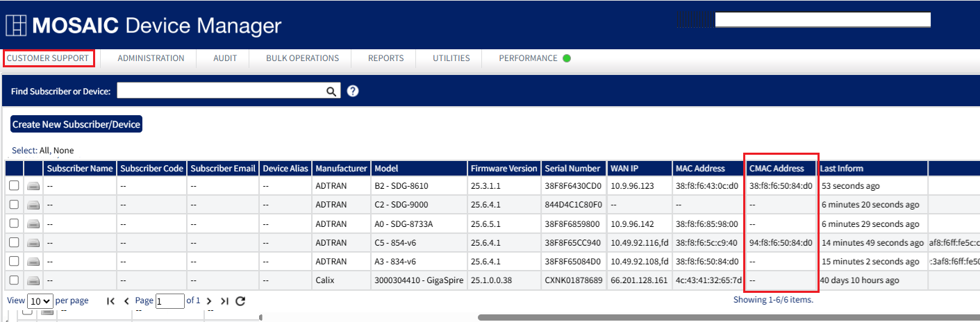 - On the Customer Support tab, type the search term in the Find Subscriber or Device field.