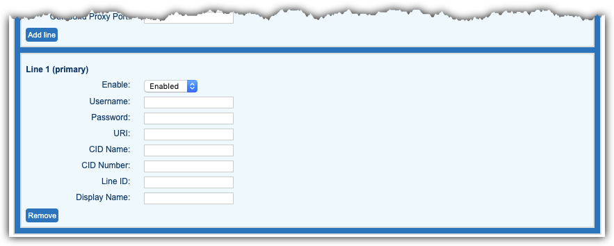Upon completing the server configuration, select the Add Line button. The following fields are presented: