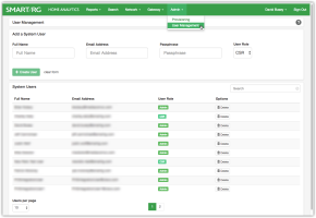 | Role | Admin -Has acces to all features of the Home Analytics Platform CSR -Has access to all features except User Management and Provisioning |